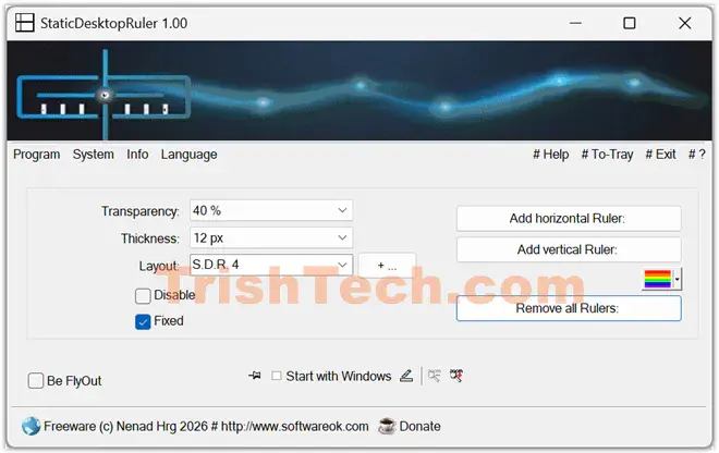 StaticDesktopRuler is a lightweight Windows utility that solves a simple but annoying problem: losing your place on huge monitors or wide spreadsheets. Developed by SoftwareOK, this tool puts up to 20 fully customizable rulers on your desktop that stay out of your way until you actually need them.